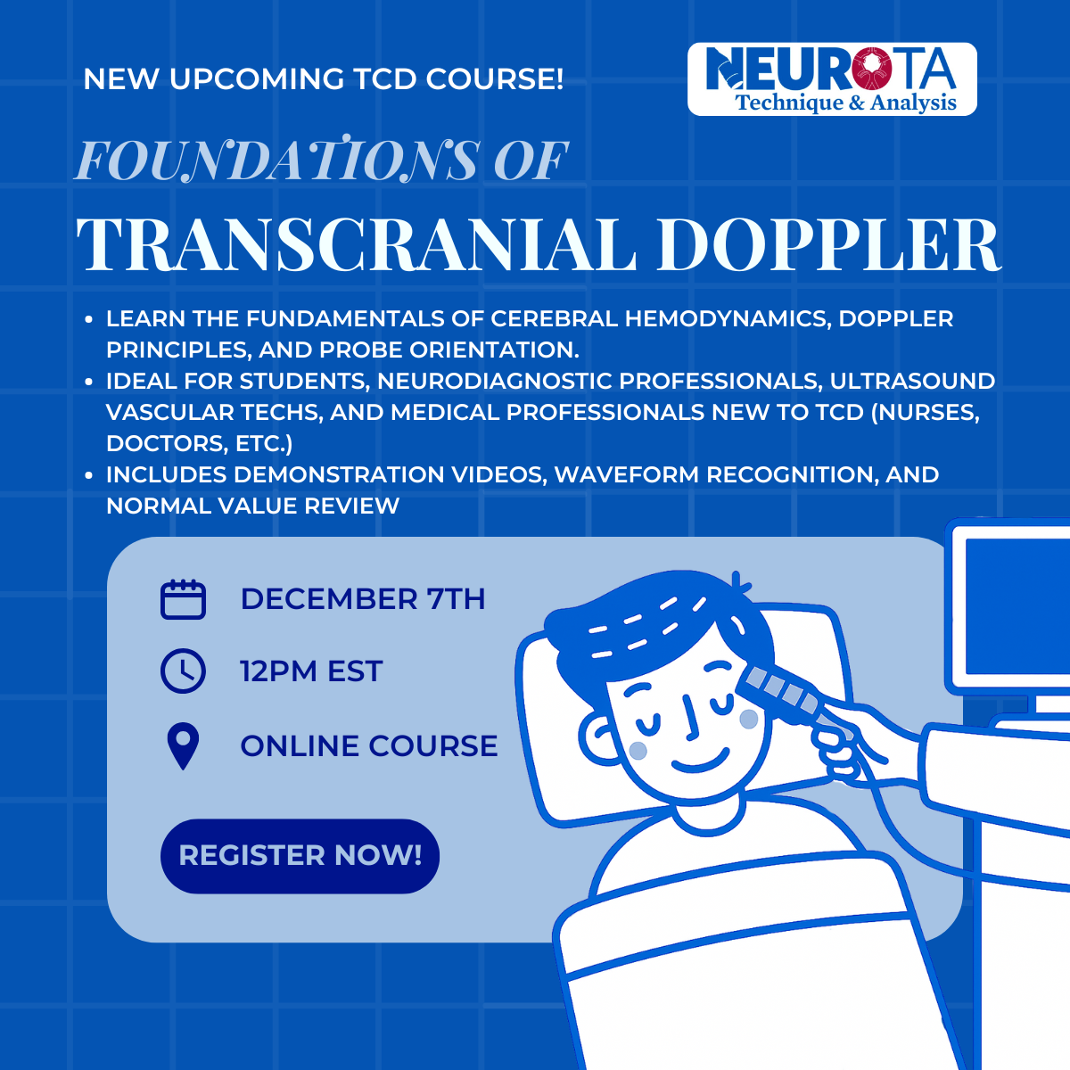 We're so excited to bring you the latest in neurodiagnostic education, TCD training updates, and industry news. Each month we'll share highlights, opportunities, and resources to help grow your skills and stay informed!